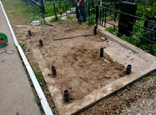 Далее устанавливаем подставки под памятники, заливаем их бетоном и ещё раз кладём подложку.