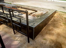 Первые две фотографии отражают состояние место захоронения. Так участок выглядел до проведения работ. Исходным материалом послужила заросшая травой территория, которая огорожена недоделанным бетонным цоколем, а также плита.