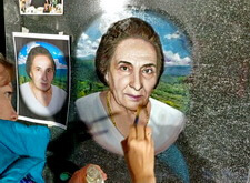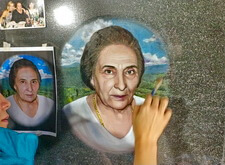 Далее этот же мастер окрашивает портрет и покрывает лаком.